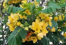 黄槐决明 H. S. Irwin & Barneby )是豆科决明属灌木或小乔木。黄槐决明分枝多,小枝有肋条;树皮光滑,灰褐色;嫩枝、叶轴、叶柄被微柔毛;叶轴及叶柄呈扁四方形;小叶长椭圆形或卵形,…全部>>