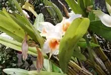 翅萼石斛是兰科石斛属的植物。茎肉质状粗厚,不分枝,干后为金黄色;叶革质,呈长圆形或舌状长圆形;总状花序出自近茎端,花苞片卵形,子房黄绿色,呈三棱形,花有橘子香气,萼囊淡黄色带橘红色,呈角状,花瓣为白色,…全部>>