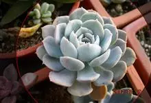 蓝石莲是景天科、拟石莲花属的多肉植物。茎部粗壮,成熟植株茎部木质化。叶片莲座型密集排列,株径不会很大,叶片相对较薄,常年绿色,表面布有白色粉末,中部凹陷,呈倒水滴状。叶尖较尖,叶缘光滑无褶皱,…全部>>