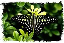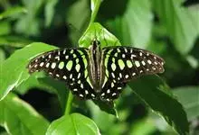 青带凤蝶Graphium sarpedon ,又名青凤蝶,是最普遍的中型凤蝶,飞行速度很快。青带凤蝶的翅膀中央有许多浅蓝色的斑点,很整齐地排列成一条直线。这些斑点由上而下逐渐变大,就像一条青色的带子。全部>>