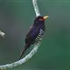 紫金鹃是一种羽色艳丽的小形杜鹃,体长约17厘米。雄鸟头、颈、胸和上体辉紫色,腹白色,具紫蓝色横斑;雌鸟上体淡铜绿色,下体白色,具淡褐色横斑。而相似种翠金鹃雄鸟上体和胸辉绿色,…全部>>