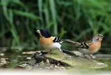 燕雀属小型鸟类,体长14-17厘米。嘴粗壮而尖,呈圆锥状。雄鸟从头至背辉黑色,背具黄褐色羽缘。腰白色,颏、喉、胸橙黄色,腹至尾下覆羽白色,两胁淡棕色而具黑色斑点。两翅和尾黑色,翅上具白斑。…全部>>