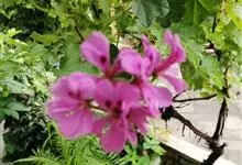 家天竺葵是牻牛儿苗科、天竺葵属多年生草本;株较高;茎直立,基部木质化,被开展长柔毛;叶互生三角状,宽卵形或肾形,基部心形或平截,具不规则锐锯齿;花梗长柔毛和腺毛;萼片披针,花冠粉红、淡红、深红或白色。…全部>>