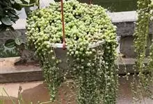 珍珠吊兰因鼓鼓、饱满翠绿的椭圆形小叶子形似珍珠状而得名。又名翡翠珠、 佛珠吊兰、翡翠珠、绿之铃,绿铃。菊科千里光属多肉植物,花期一般是当年的12月至翌年1月。珍珠吊兰性喜富含有机质的、疏松肥沃的土壤。…全部>>