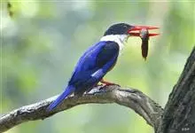蓝翡翠是佛法僧目翠鸟科翡翠属鸟类。嘴粗长似凿,基部较宽,嘴峰直;翼圆。体色以蓝色、白色及黑色为主;额、头顶、头侧和枕部黑色;后颈白色,向两侧延伸与喉胸部白色相连,…全部>>