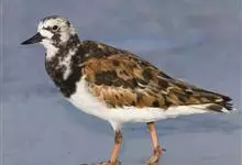 翻石鹬:体重82-135克,体长180-240毫米。体型高矮兼称,看起来十分的滑稽。它们在繁殖季时体色非常醒目,由栗色、白色和黑色交杂而成,嘴短,黑色,脚橙红色。到了冬天,翻石鹬身上的栗红色就会消失,…全部>>