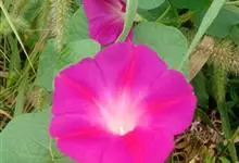 圆叶牵牛 Roth)是旋花科,番薯属一年生缠绕草本植物,叶片圆心形或宽卵状心形,基部圆,心形,顶端锐尖、骤尖或渐尖,两面疏或密被刚伏毛;花腋生,着生于花序梗顶端成伞形聚伞花序,花序梗比叶柄短或近等长,…全部>>