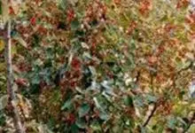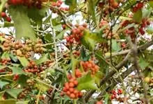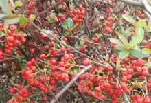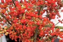 火棘 H. L. Li)是蔷薇科火棘属常绿灌木,老枝呈暗褐色;叶片呈倒卵形,边缘有钝锯齿,齿尖向内弯,两面皆无毛;叶柄短,无毛或嫩时有柔毛;花序是复伞房状,花瓣呈白色近圆形;果球近圆形,…全部>>