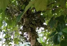 大果榕是桑科榕属的小乔木,株高可达10米;幼枝被柔毛;叶互生,宽卵状心形或近圆形;雄花无梗、匙形、花丝长,雌花生于雌株榕果内,子房白色;榕果簇生于树干基部或老茎短枝上、扁球形或陀螺形,…全部>>