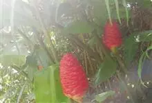 红球姜 Roscoe ex Sm.)是姜科姜属的多年生草木植物。植株高达2米,根茎块状,内部淡黄色,叶披针形或长圆状披针形,无毛或下面被疏长柔毛,无柄或具短柄,苞片覆瓦状排列,初淡绿色,后红色。…全部>>
