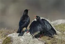 红嘴山鸦,是脊索动物门鸟纲雀形目鸦科鸟类。红嘴山鸦的成鸟通体羽毛纯黑色具有蓝色金属光泽,翼和尾泛有蓝绿色金属光泽;虹膜暗褐色,喙较为尖细,并且呈镰状下弯,喙和脚朱红色。…全部>>