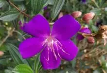 野牡丹:灌木,高0.5-1.5米,分枝多;茎钝四棱形或近圆柱形,毛扁平边缘流苏状。叶片坚纸质,卵形或广卵形,全缘,7基出脉,两面被糙伏毛及短柔毛。伞房花序生于分枝顶端,近头状,…全部>>