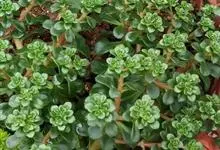 东南景天是景天科、景天属植物。多年生草本。茎斜上,单生或上部有分枝,高10-20厘米。叶互生,下部叶常脱落,上部叶常聚生,线状楔形、匙形至匙状倒卵形。聚伞花序宽5-8厘米,有多花;苞片似叶而小;花无梗,…全部>>