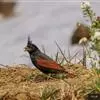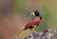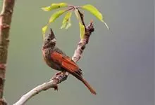 凤头鹀:属小型鸣禽,体重21-31克,体长134-175毫米。以头顶的细长羽冠为特征,雄鸟全身几乎均为黑色具蓝色光泽,两翅和尾以及尾上覆羽栗红色。雌鸟具短的褐色羽冠,上体暗橄榄褐色,…全部>>