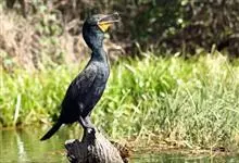 普通鸬鹚是属于鲣鸟目鸬鹚科鸬鹚属鸟类,又名水老鸦、鱼鹰、乌鬼、黑鱼郎等。体长720—900毫米,雌雄同型。通体黑色,有绿褐色金属光泽;喙厚重,喙基和喉囊橙黄色,脸颊及喉白色;夏羽颈及头饰具白色丝状羽,…全部>>