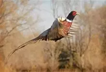 环颈雉是雉科、雉属的一种走禽,共有30个亚种。体重900-1050克,体长53-89厘米。体型较家鸡略小,但尾巴却长得多。雄鸟和雌鸟羽色不同,雄鸟羽色华丽,多具金属反光,…全部>>
