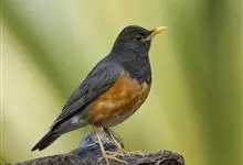 黑胸鸫属中型鸟类,体长20-30厘米。雄鸟整个头、颈、胸黑色,其余上体暗灰色,下体橙棕色,极为醒目。嘴、脚蜡黄色。雌鸟上体橄榄褐色,颏、喉白色,上胸橄榄褐色具黑色斑点,其余与雄鸟相似。…全部>>