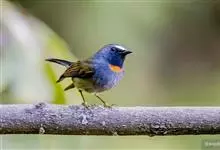 棕胸蓝姬鹟:属小型鸣禽,体长10-13厘米,体重6-10克,是一种体型很小的灰蓝及棕色鹟,雌雄羽色不同,雄鸟羽色艳丽,雌鸟羽色暗淡。雄鸟上体深蓝色,胸橙黄色,下腹灰白色。亚成鸟具褐色斑驳。…全部>>
