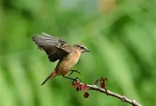 黑喉石鵖,雀形目鹟科石鵖属小型鸣禽,俗名谷尾鸟、黑喉石。其体色为黑褐色。雄鸟头部、背部、两翼及尾黑色,颈侧及翼上具白斑,胸部和腹侧红棕色,腰及尾下覆羽白色。雌鸟体色为褐色,上体具深色纵纹,胸部染棕色,…全部>>