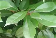 石楠 Kalkman),是蔷薇科石楠属的常绿乔木,高5~12米,株型紧凑,树冠圆球形。树枝为褐灰色;鳞片为褐色,没有毛;叶片革质,长椭圆至侧卵状椭圆形,有锯齿,新叶红色光亮。复伞房花序,白色小花,…全部>>