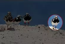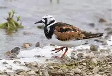 翻石鹬:体重82-135克,体长180-240毫米。体型高矮兼称,看起来十分的滑稽。它们在繁殖季时体色非常醒目,由栗色、白色和黑色交杂而成,嘴短,黑色,脚橙红色。到了冬天,翻石鹬身上的栗红色就会消失,…全部>>