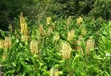 黄姜花:姜科,姜花属多年生草本草本芳香花卉,秋冬季开花,穗状花序,长圆形;苞片长椭圆形,覆瓦状排列,每一苞片内有花3-5朵;花深黄色,形似蝴蝶,气味芬芳纯正,沁人心脾;唇瓣倒心形,黄色,…全部>>