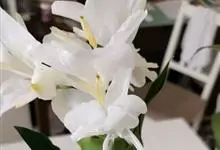 姜花又名野姜花。是姜科姜花属的多年生草本植物,茎高1-2米;叶片长圆状披针形或披针形,叶面光滑,叶背被短柔毛;穗状花序顶生,椭圆形,花芬芳,白色;蒴果卵状三棱形,微黄绿色;种子鲜红色,具橘红色的假种皮。…全部>>