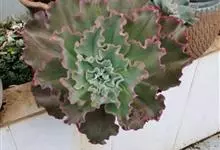 女王花笠,又名扇贝石莲花、女王花舞笠,是景天科拟石莲花属的多肉植物。由美国加利福尼亚州的育种师Dick Wright于1964年培育。特征是呈大波浪状褶皱的红色叶缘和气质高贵的粉紫色调。…全部>>