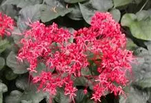赪桐 Sweet)是唇形科、大青属灌木,高1-4米,叶片圆心形,顶端尖或渐尖,基部心形,边缘有疏短尖齿,表面疏生伏毛,二歧聚伞花序组成顶生,大而开展的圆锥花序,花序的最后侧枝呈总状花序,花萼红色,…全部>>