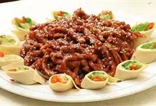 京酱肉丝,是一道知名度很高的菜肴,它是北京菜中的经典代表菜之一。制作时选用猪瘦肉为主料,辅以甜面酱、葱、姜及其它调料,用北方特有烹调技法“六爆”之一的“酱爆”烹制而成。 成菜后,咸甜适中,酱香浓郁…全部>>