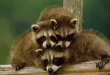 浣熊:食肉目、浣熊科的一种哺乳动物,成年体长40-65厘米,尾长20-40厘米,体重4-10千克,雄性稍大于雌性。体型较小。面部有黑色眼斑,形象滑稽,绰号“蒙面大盗”;尾部有5到7条黑白相间的环纹。…全部>>