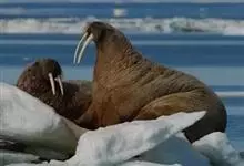 海象是食肉目海象科哺乳动物,海象科只有一种海象,没有亚种。海象身体呈圆筒形,粗壮而肥胖。头部扁平,吻端较钝。前肢较长,五指分得很开;后肢能向前方折曲,可以借以在陆地上爬行,游泳时左右摆动。尾巴很短,…全部>>