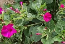 即紫茉莉,英文名:Four-o'clock,Marvel of Peru,为紫茉莉科、紫茉莉属多年生草本植物,一年生栽培。株高50~80cm。根粗壮,茎多分枝而散生。叶对生,卵形或心脏形。花数朵簇生…全部>>