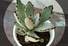 褐斑伽蓝是景天科伽蓝菜属的多年生多肉类植物,茎直立,多分枝,叶生于枝上,肉质叶片匙形,上面密被白色绒毛,下部全缘,叶缘上部有缺刻,缺刻处有深褐或棕色斑块。褐斑伽蓝原产非洲的马达加斯加岛。…全部>>