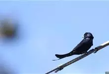 黑卷尾是雀形目卷尾科一属,又称铁练甲、铁燕子、铁林哥、羊蹄刺、榨油郎,体长约30厘米全身蓝黑色而具金属光泽,尾长且分叉较深。幼鸟似成鸟,金属光泽弱,下腹部具近白色的横纹。虹膜暗红色,嘴黑色,脚黑色。…全部>>