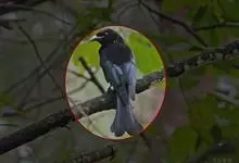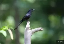 发冠卷尾是中型鸟类,体长28-35厘米。通体绒黑色缀蓝绿色金属光泽,额部具发丝状羽冠,外侧尾羽末端向上卷曲。栖息于海拔1500米以下的低山丘陵和山脚沟谷地带,多在常绿阔叶林、次生林或人工松林中活动。…全部>>