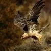 胡兀鹫是隼形目鹰科胡兀鹫属鸟类,别名大胡子鹫、胡子雕、髭兀鹫、胡秃鹫。头顶与两侧灰白色;眼睛前面具又黑又长的黑色贯眼纹;嘴大而侧扁;颏下有一簇黑色刚毛。上体黑灰色,…全部>>