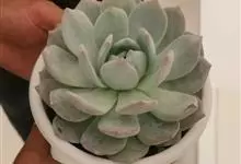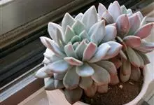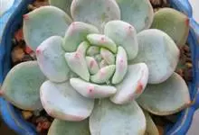 芙蓉雪莲是景天科拟石莲花属的植物。由于叶片表面覆盖着一层厚霜粉,通常呈现出白色;日照增多,温差增大后叶缘、叶尖会呈现出粉红色或橙红色。…全部>>
