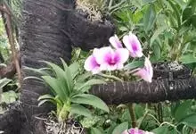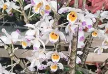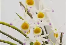 肿节石斛,是兰科石斛属多年生草本植物。肿节石斛茎斜立或下垂,肉质,圆柱形;叶纸质,长圆形;花序生于已落叶老茎上部,花白色,上部紫红色,有香气;花瓣宽长圆形,唇瓣白色,中部以下金黄色,上部紫红色,…全部>>