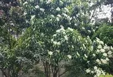 石楠 Kalkman),是蔷薇科石楠属的常绿乔木,高5~12米,株型紧凑,树冠圆球形。树枝为褐灰色;鳞片为褐色,没有毛;叶片革质,长椭圆至侧卵状椭圆形,有锯齿,新叶红色光亮。复伞房花序,白色小花,…全部>>