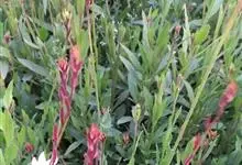 山桃草是柳叶菜科、山桃草属植物。多年生宿根草本。高60-100厘米,叶无柄,椭圆状披针形或倒披针形,花期晚春至初秋;多花型,花蕾白色略带粉红,初花白色,谢花时浅粉红。花紫红色,成密生的穗状花序,…全部>>