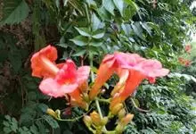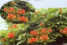 凌霄 Schum.),别名上树龙、五爪龙、九龙下海等,为紫葳科凌霄属的攀援藤本植物。其茎木质,以气生根攀附于它物之上。叶对生,为奇数羽状复叶;小叶卵形至卵状披针形,边缘有粗锯齿;顶生疏散的短圆锥花序,…全部>>