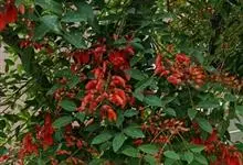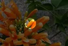 炮仗藤 Miers)紫葳科炮仗藤属藤本植物。小枝顶端有丝状卷须;叶对生,卵形;花萼钟状,橙红色,长椭圆形,花丝丝状,花药叉开;果瓣为革质,舟状。花期1-6月。初夏红橙色的花朵累累成串,状如鞭炮,…全部>>