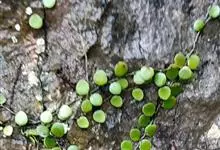 伏石蕨是水龙骨科、伏石蕨属小型附生蕨类植物。根状茎细长横走,淡绿色,疏生鳞片粗筛孔,两侧不规则分叉。叶远生,二型;叶片近球圆形或卵圆形,基部圆形或阔楔形,全缘;能育叶狭缩成舌状或狭披针形,叶脉网状,…全部>>