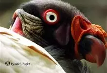 王鹫:是美洲鹫科、王鹫属大型食腐鸟类。体型很大,体长约78厘米。头部裸露,色彩极鲜艳醒目。嗉囊发达。尾短。它的头部及颈部没有羽毛,皮肤颜色有异,包括黄色、橙色、蓝色、紫色及红色。…全部>>