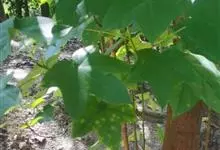刺楸 Koidz.),五加科刺楸属落叶乔木,高30米。树干通直;树皮纵裂灰黑褐色;叶掌状分裂长圆状卵形;伞形花序,花较小白色或淡黄绿色;果蓝黑色;花期7-8月,果期9-11月。变种有深裂叶刺楸,…全部>>