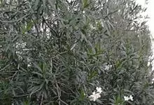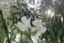 白花夹竹桃是夹竹桃科、夹竹桃属植物夹竹桃的栽培品种。常绿直立大灌木,枝条灰绿色;嫩枝条具稜,被微毛,老时毛脱落。叶3-4枚轮生,下枝为对生,叶面深绿,叶背浅绿色;侧脉纤细平行与中脉成直角;叶柄扁平,…全部>>