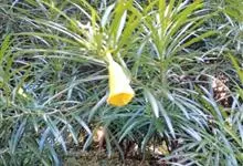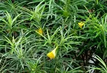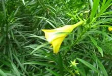 黄花夹竹桃K. Schum.),又名“酒杯花”“柳木子”“黄花状元竹”,是夹竹桃科,黄花夹竹桃属下的常绿乔木植物。高达5m,全株无毛,树皮棕褐色;叶互生,近革质,线形或线状披针形;花大,黄色,具香味,…全部>>