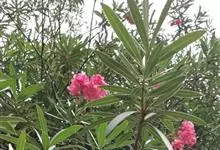 夹竹桃,又名红花夹竹桃、欧洲夹竹桃,是夹竹桃科夹竹桃属的一种常绿直立大灌木,枝条灰绿色,含水液。叶披针形,3叶轮生。聚伞花序顶生,花冠粉红至深红色,花冠漏斗状,有特殊香味。蓇葖果,圆柱形。种子长圆形,…全部>>