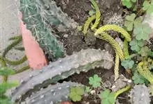 鼠尾掌 Lem.)是仙人掌科鼠尾掌属植物,变态茎细长,匍匐,在原产地长可达2米,具气生根。茎粗1.5-2厘米。幼茎色绿,以后变灰。具浅棱10-14,刺座小。辐射刺10-20,针形。花期4-5月,…全部>>